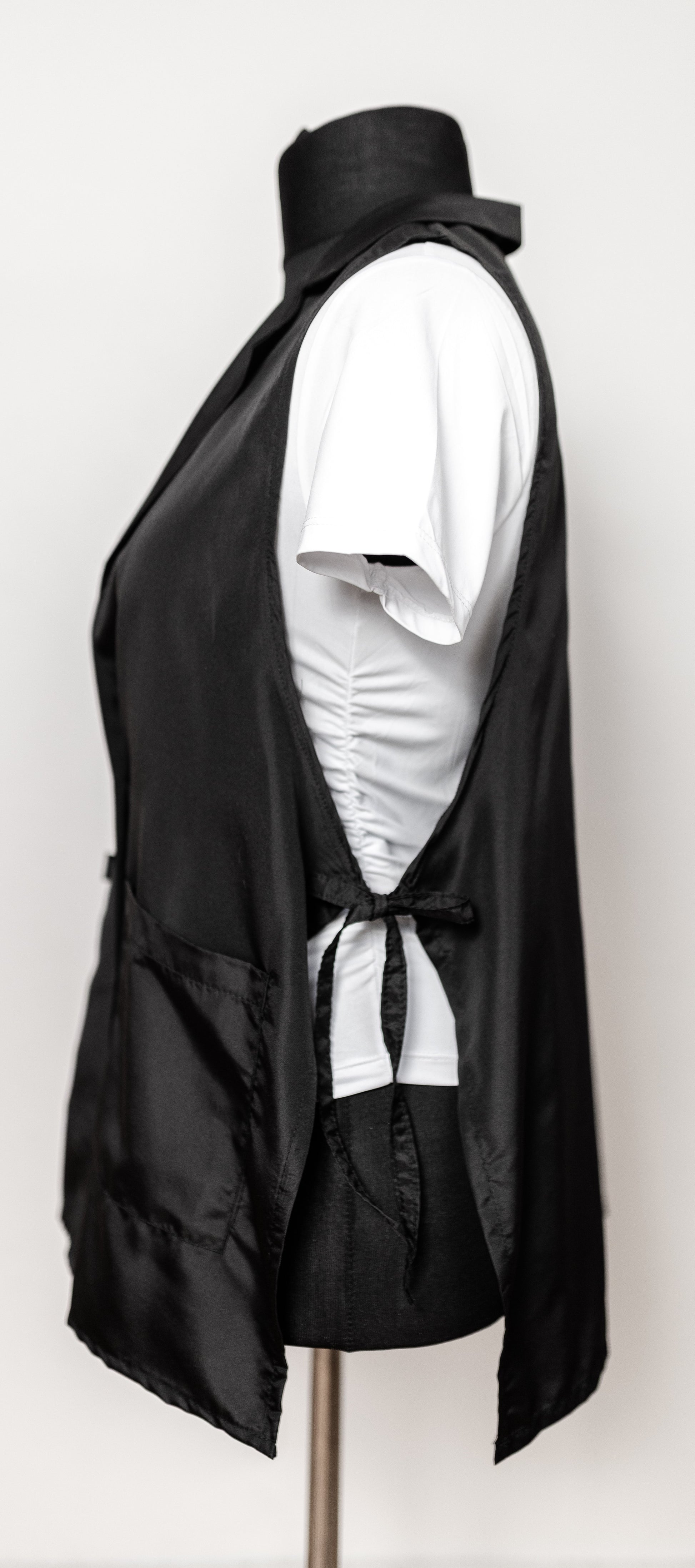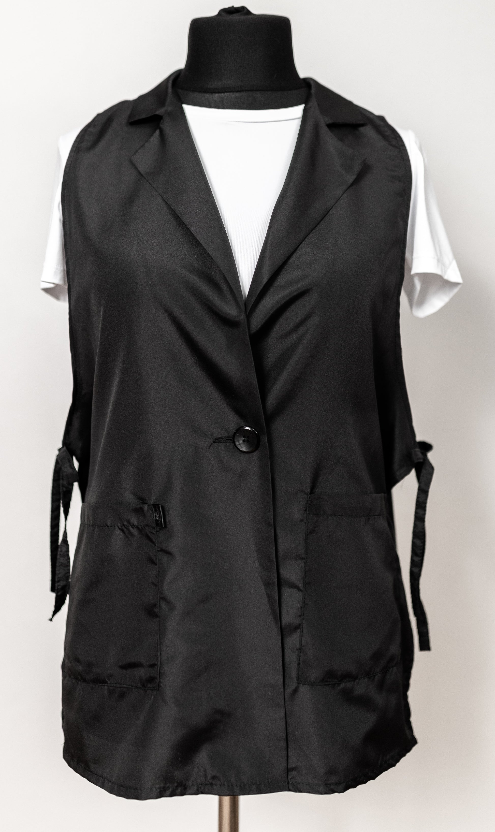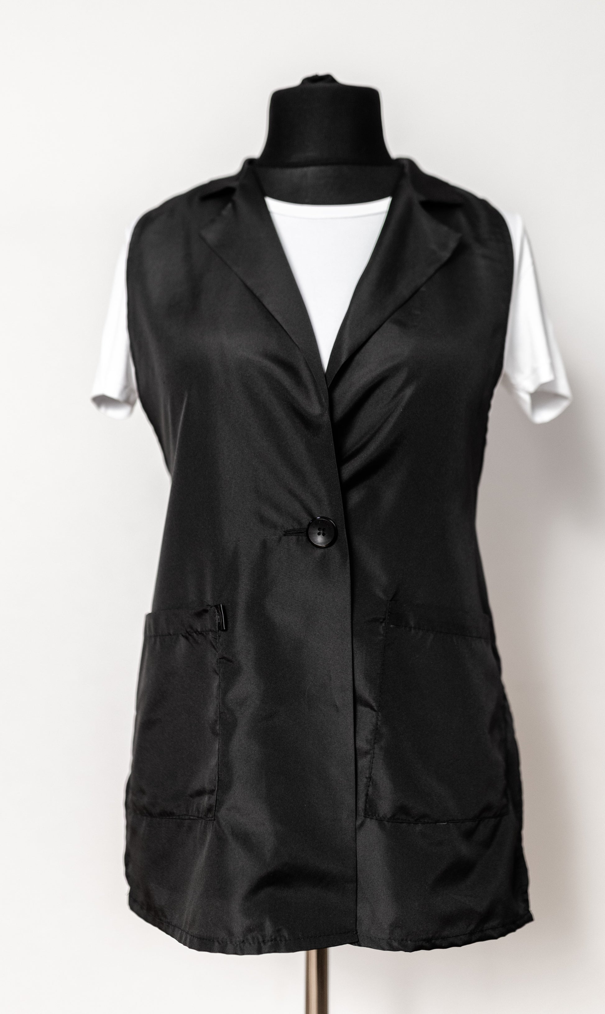 Extended Work Vest with Adjustable Sides and Pockets Lightweight, breathable, and functional — designed for professionals who value freedom of movement and all-day comfort. The elongated silhouette adds elegance, while the adjustable sides ensure a perfect fit for every body type. Practical pockets provide convenient space for work essentials. Simple. Stylish. Comfortable.